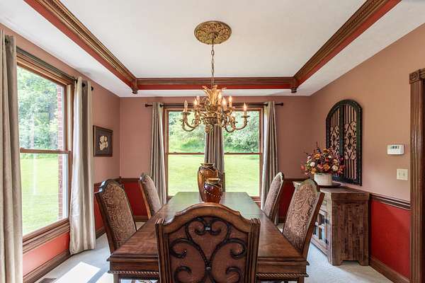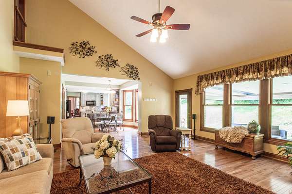 Exceptionally well maintained, this 4BR, 3.5BA home sits on 5 private acres and offers flexible living space throughout. Also includes TWO additional well-sized FINISHED ROOMS in the BASEMENT, providing excellent flexibility for fitness, hobby, or media use. Updates include an updated kitchen, refreshed bathrooms featuring a primary bath with double vanity, hardwood flooring, newer carpet, fresh interior paint, and a fully updated walkout lower level with new flooring and a new walkout door. The finished walkout basement includes two additional finished rooms. A functioning life room offers comfortable year-round enjoyment, while a bright private office, formal dining room, and family room provide ideal spaces for everyday living and entertaining. With thoughtful updates, versatile living areas, and a private acreage setting, this home delivers space, privacy, and functionality.