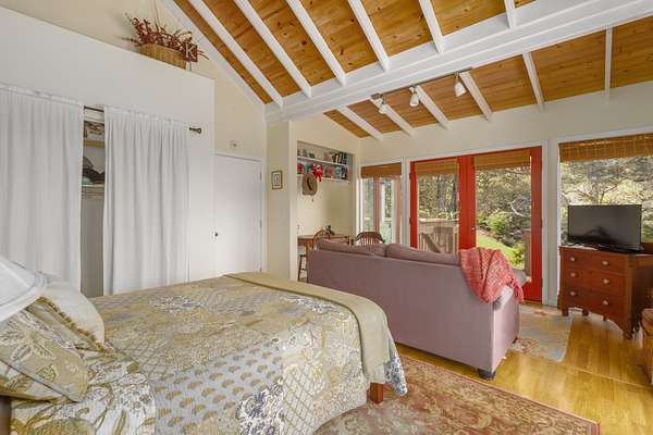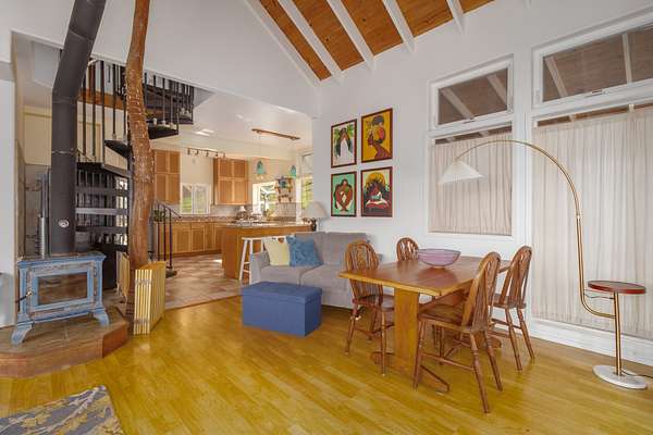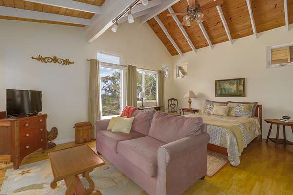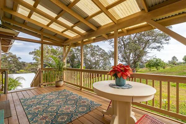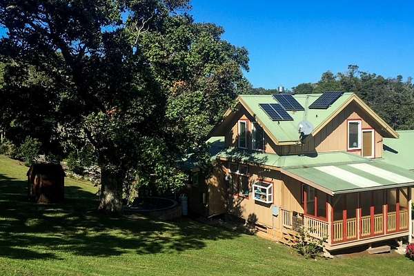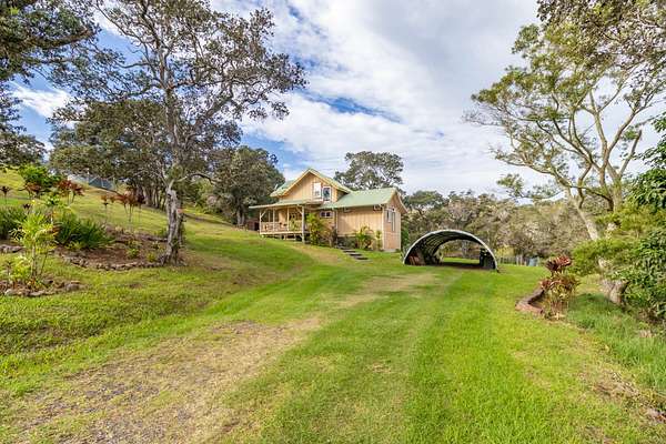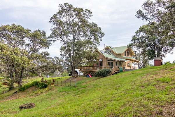 Live completely off grid on this very private up country parcel with a charming 3-bedroom 2 bath home looking out over a lovely Ohia forest at approx. 2000 ft in elevation off of upper Antone Deluz Road. Enter the home through the front lanai into the bright country kitchen, boasting an atrium-garden window, shaker style cabinets with granite counter tops including peninsula that divide the kitchen from the main living area. Living room and bedrooms have open beamed ceilings. Well-placed wood burning stove lends heat to the main living area. Step out to the rear lanai and relax in the midst of an Ohia forest, or use the stairs out to the back yard and small fenced in area. Lower-level bedroom includes room for a sitting area with porch and stairs that lead outside to the fenced garden. Upper level is accessed by a spiral staircase off the kitchen and has 2 bedrooms and 1 bath. Beautiful grounds include many producing plants and trees including lime, apple banana, tangerine, wild loquat, guava, sour sop, sapota, pineapple, turmeric and lemon grass. Ohia and Koa can be found as well as countless orchids, bromeliads, ti plants, etc. Neighboring ranch lands have fenced in their parcels leaving this parcel mostly fenced. There is a fenced in garden area and large covered storage tent. A seasonal stream with waterfall moves through the parcel in times of steady rain. Take the path past the dry streambed up to the rear of the parcel, where a farm building/studio/guest room nestled in the Ohia forest offers multiple uses. Home to be sold "AS IS".