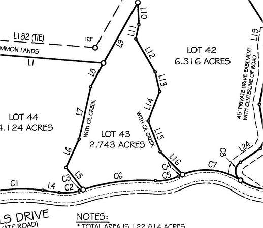 What an amazing lot at the end of the community for endless privacy. Level entry into a roughed in driveway. Hear the sounds of the bold waterfall across the street & enjoy 2 small streams on your own property at the property lines. Discover the epitome of serene mountain living at Round Mountain Falls, embodying the allure of cool summer mountain landscapes. This parcel boasts an almost level building site, promising an unparalleled sense of seclusion, Underground utilities. Adjacent to it lies a large expanse of pristine undeveloped mountain terrain. Unlike other communities, the minimum 1400 sq foot home requirement offers flexibility without the need for oversized constructions. Whether crafting a cozy retreat or an ultimate estate, the choice is yours. The community's features paved roads, common areas, trails & extensive mountain biking opportunities. Amenities such as waterfalls, mountain streams, pavilion, waterfall, trails, pond, fire pit & more. Lot 43 was originally $120,000