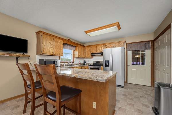 - Dishwasher, Electric Oven, Electric Range, Microwave, Refrigerator, Stainless Steel Appliance(s)