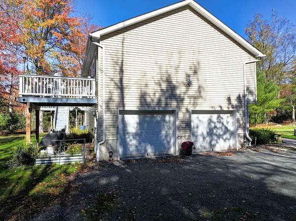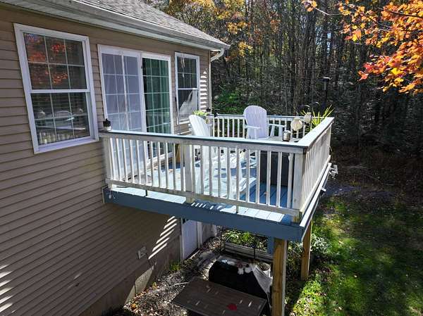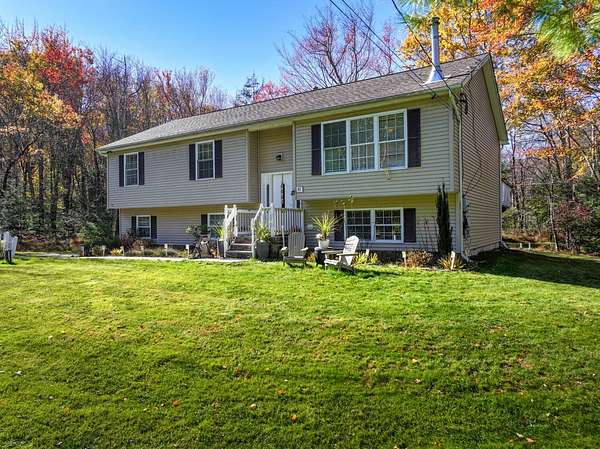 Escape to peace and privacy in this beautifully maintained 3-bedroom, 3-bath bilevel home on 3.25 wooded acres at the end of a quiet dead-end road in Wurtsboro, NY. This spacious residence combines modern updates with comfortable country living just minutes from NYS Route 17 and only 75 miles from the George Washington Bridge. The sunlit main floor features a modern kitchen with quartz countertops, stainless steel appliances, and an open flow to the dining area, where sliding doors lead to a large deck perfect for entertaining or relaxing with nature views. The primary bedroom includes a Juliet balcony offering a private outdoor retreat. The lower level adds great additional living space with a finished family room or den complete with a closet, ideal for guests, a home office, or media room. Step outside to enjoy two decks and the tranquility of your private acreage. Enjoy nearby outdoor recreation at the renowned Basha Kill Wildlife Area, plus easy access to Bethel Woods Center for the Arts, Resorts World Catskills, and charming local shops and eateries. This home blends modern comfort and country serenity in a convenient, commuter-friendly location.