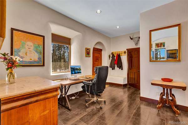 Escape the ordinary and discover a life where supreme energy efficiency meets mountain luxury! This custom-built, energy efficient straw bale home is poised on 5 private acres just outside of historic Fairplay, bordering Public Land for immediate access to the outdoors! The location of this quiet sanctuary is unbeatable, placing you minutes from world-class fishing on the South Platte River and hiking/biking trails in the National Forest, with easy drives to Breckenridge for skiing and to Buena Vista/Salida for white water river rafting and soaking in natural hot springs. Inside this beautiful 2-bedroom, 2-bathroom residence, you`ll find elegant porcelain Spanish tile floors kept perfectly warm by radiant in-floor heating, leading to an open living room and kitchen featuring vaulted ceilings and abundant natural light. The gourmet eat-in kitchen is a chef`s dream with a stunning subway tile backsplash, ample counter space including an XL peninsula, and unique frosted glass cabinet doors with interior lighting. Luxury defines the bathrooms: the primary en suite includes a relaxing steam shower, and the secondary bathroom boasts a custom jacuzzi bathtub designed to comfortably accommodate someone up to 6`4"! Practicality meets possibilities in the oversized attached 2-car garage / workshop / flex area, which features a high ceiling and in-floor radiant heat. The garage is even tall enough for you to add a lift if that`s on your wishlist! Outside, the gentle, wooded acreage is located on a very private and quiet cul-de-sac and includes a large greenhouse where you can try your green thumb at gardening or extend your storage or living space, completing this rare offering of sustainable living, luxurious appointments, and unparalleled access to Colorado`s best recreation. This is no "cookie cutter home!" You`ll be amazed at how quiet, warm and comfortable this amazing character-filled abode is!