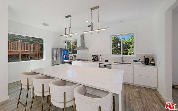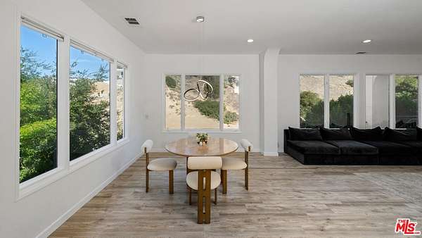 This stunning contemporary style home blends style and functionality within the exclusive 24 hour guard gated community of Bell Canyon, part of the award winning Las Virgenes School District. Designed for comfort and entertaining, the open concept layout features high ceilings, designer lighting, and walls of glass showcasing breathtaking canyon and mountain views. The home offers 5 bedrooms and 5 baths, including a newly remodeled chef's kitchen with a quartz waterfall island, stainless steel appliances, and a wine fridge opening to a spacious family room with a dramatic 100" linear fireplace. Formal living and dining areas provide ideal spaces for gatherings, while a private wing offers flexibility for a guest suite, office, or game room.Entertainment highlights include a custom wine cellar with whiskey bar and a home theater with kitchen bar. The luxurious primary suite features a cozy fireplace, sitting area with panoramic views, walk-in closet, and a spa inspired bath.Enjoy serene outdoor living with peaceful gardens, multiple terraces, and areas perfect for dining al fresco. Additional features include an oversized 3-car garage and abundant storage. Bell Canyon offers resort style amenities, private parks, equestrian center, hiking and riding trails, tennis courts, fitness gym, clubhouse events, and 24 hour guarded entry, all just minutes from the best of Los Angeles.