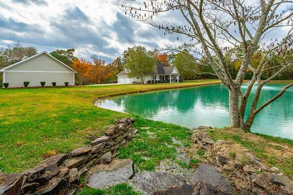 Discover this stunning residence at 43 Hidden Hills Drive, Chickamauga, Georgia, within the city limits and the award-winning school district. This exceptional home is predominantly single-story, featuring four bedrooms and three bathrooms on the main level, with a bonus room and bathroom upstairs for extra flexible living, privacy, or guest accommodations. A two-car attached garage accompanies a substantial detached garage with a bathroom, and perfect for an RV, extra cars, tools, and can be used for all of your hobbies or needs. Enjoy outdoor entertaining on a gorgeous patio overlooking your private pond, complete with a beautiful waterfall powered by a dedicated well. The soothing, year-round focal point enhances the landscape, complemented by an irrigation system to keep the yard pristine. An inviting back porch grilling area adds to the entertaining charm. This exceptional home offers sidewalks for easy walks to school activities and local county events - truly a property you don't want to miss. (Sellers are selling their home with 2.18 acres known as 43 Hidden Hills Drive, Chickamauga, Georgia, Tract 1, Plat Map Book 2024, Plat Map Page 690, that has been separated out from Parcel 3022 032 - 771 West 12th Street, Chickamauga, Georgia 30707. (See Plat Map in MLS documents.)