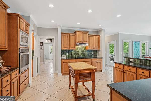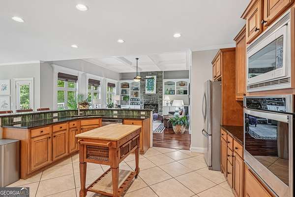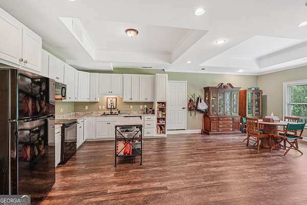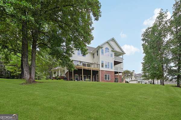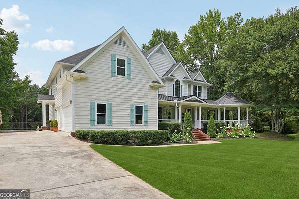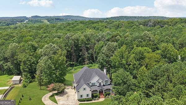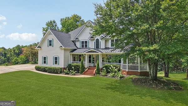 This traditional Southern home on 5 private acres blends charm and modern comfort with wraparound porches, gazebo, bright rooms, and flexible spaces. The primary suite features a vaulted sitting area, private balcony, and oversized bath with dressing room. A butler's pantry connects the kitchen with stainless appliances and stone counters to the coffered family room with stacked-stone fireplace. The main level also offers a guest suite, powder room, and office. The finished walk-out terrace adds high ceilings, a second kitchen, open rec space, two potential bedrooms, full bath, and its own garage and entrance-perfect for in-laws, guests, or income rental. The property includes a precut access road for future cabins or retreats, 12 new Green Giants for privacy, and no HOA. Updates include new roof, gutters, exterior paint, variable-speed HVAC, and R48 insulation. Located near Cartersville, I-75, Lake Allatoona, and top-ranked Cartersville City Schools. At $149/sq ft, it's one of North Georgia's strongest values with acreage, upgrades, and income potential.