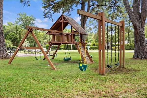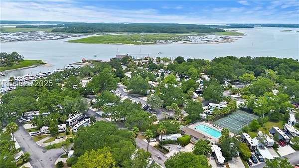 Est $980/moWatch dolphins swim, manatees, bird and wildlife all from this perfect upscale water front living community! pet friendly, golf cart accessible, right on water-easy access to 278. Two pools-hot tub-tennis, picnic area, clubhouse, playground and marina on site. This beautiful lot has been completely renovated with pavers, firepit, seating, furniture, landscaping, lighting, plants, paths, and is in a great location with beautiful shade trees. close to Sunset Grill restaurant. amenities include water front pool, tennis courts, playground, club house, rec area, gathering areas and security. Wonderful community atmosphere! Possible rental $