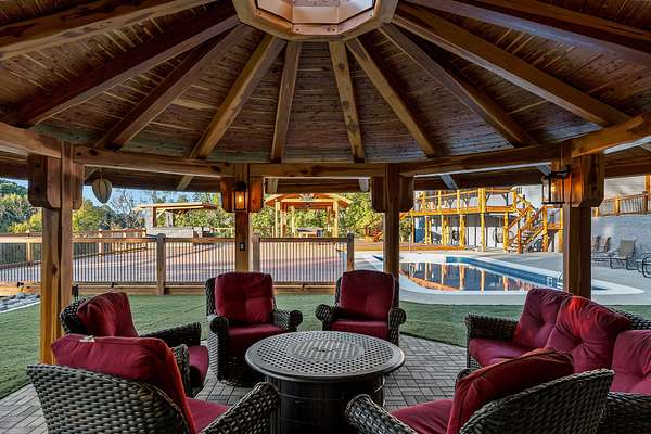 Private 11.4 acres w/stunning 4BR, 3BA home- owner sparing no expense. Large spacious living area has stone fireplace w/easy access to beautiful kitchen featuring snack bar, island, walk-in pantry & smart appliances. Primary bedroom has classic bath, jacuzzi tub, walk-in tile shower & more. The outdoor retreat is indescribable with all the extras: in ground salt water pool, 18x18 octagon shaped pergola w/firepit & turf game area, 24'x14' covered shelter w/built in 15' cedar table, covered 9 person Artesian hottub, outdoor shower, huge outdoor kitchen w/pizza oven, beer keg w/tap, wine cooler, grill, refrigerator & outdoor TV, this 5000 sq ft deck offers endless entertainment, other extras includes 600 sq ft furnished guest house perfect for AirBnb, detached 2 car garage, 2 additional workshops, chicken coop w/fenced yard, this property is surrounded by impressive cedar/iron custom fencing ideal for horses, So much to offer, must see to believe, call today for private tour.