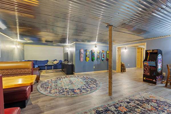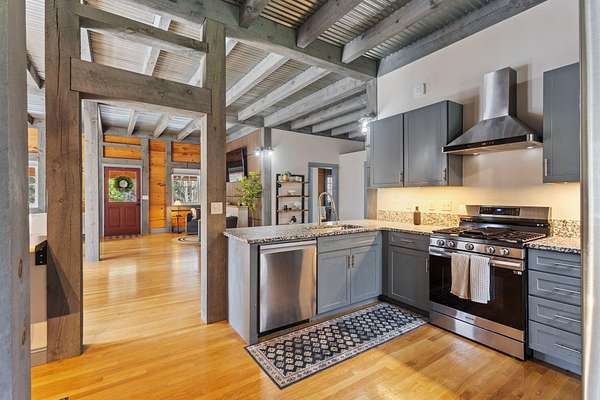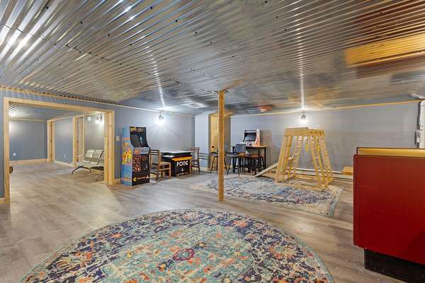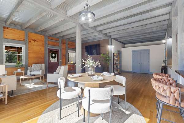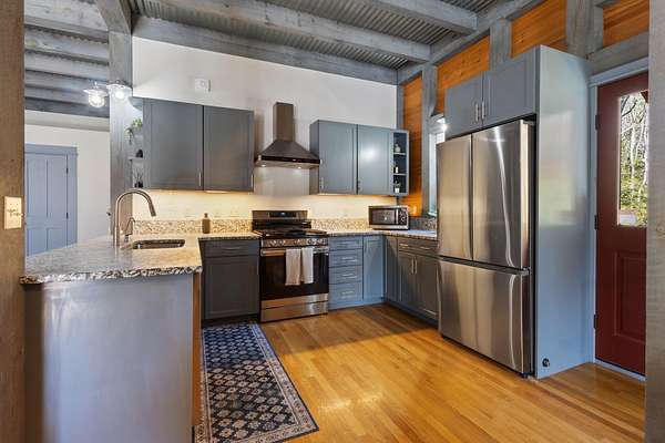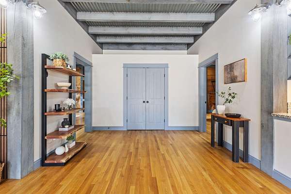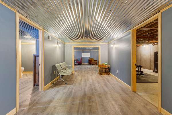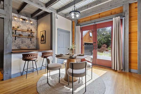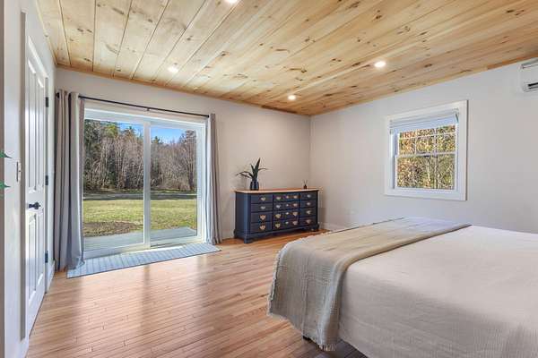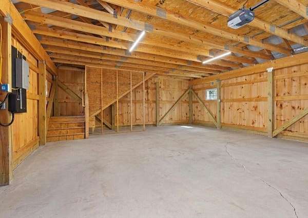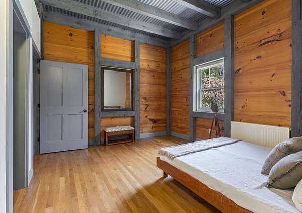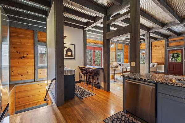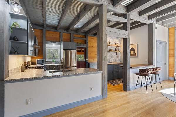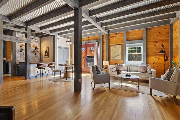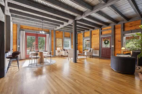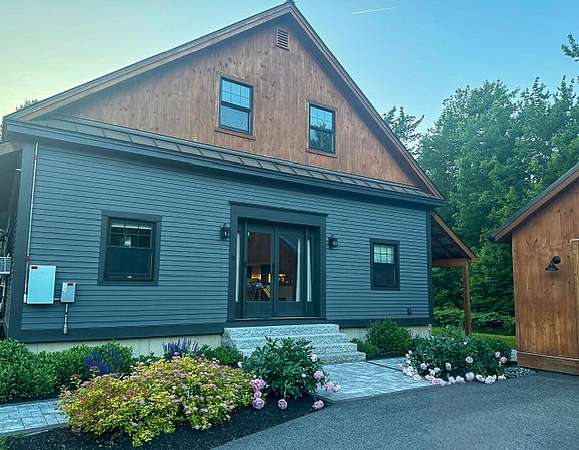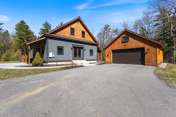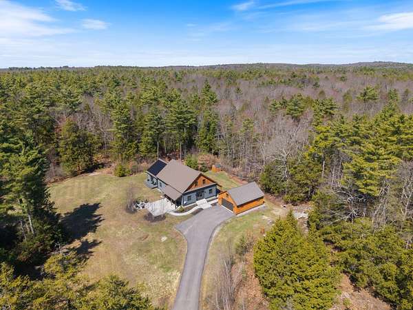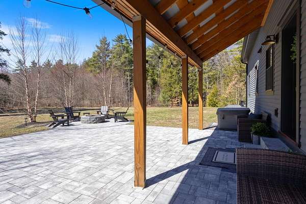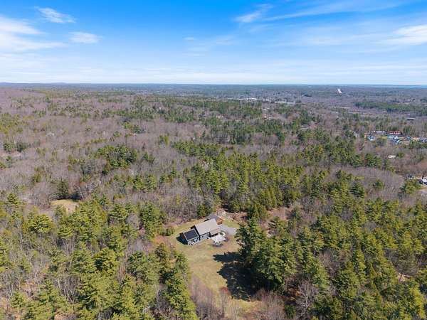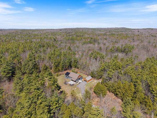 This is not your typical Westbrook home. Set on 12.1 acres, this rare property delivers space, privacy, and character that is nearly impossible to find in this location. Originally a horse barn, the home was transformed in 2012 and expanded in 2023 into a stunning modern residence that blends history with elevated living. Step inside to soaring 11' ceilings, exposed post and beam, and beautiful hardwood flooring that immediately set the tone. The kitchen is both luxurious and functional with stainless steel appliances, gas range, sit up bar, and open shelving, while the living space is anchored by an electric fireplace. The layout is designed for flexibility with 4 bedrooms, including a spacious primary suite featuring a walk in closet, full bath, and direct access to a private deck. Three additional guest bedrooms, including one with its own ensuite, along with a dedicated office or flex space and first floor laundry, make everyday living seamless. The finished basement adds versatility with electric baseboard heat, 4 bonus spaces, a full bath, and both interior access and exterior entry. An unfinished 2nd level offers future expansion potential. Outside is where this property truly stands out even further. A large paver patio, covered front and back patios, stone fire pit, hot tub, paved driveway, shed, granite steps, and beautifully landscaped grounds create a private retreat. The oversized 2 car garage, built in 2021, with EV charger and 2nd story storage or bonus space adds even more functionality. With owned Tesla solar panels installed in 2025, metal roof, heat pumps for heating and cooling, smart thermostats, video doorbell, new propane boiler, and water treatment system, this home is as efficient as it is striking. Located just 10-20 minutes to downtown Westbrook, the Old Port, Sebago Lake, and Pine Point Beach, this property offers complete privacy without compromising convenience.