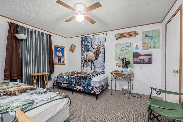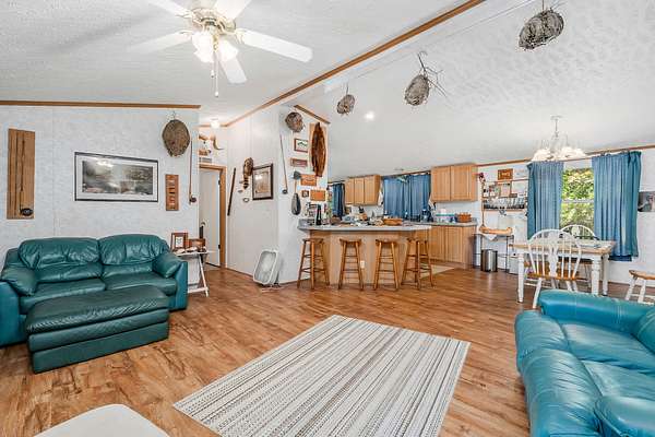 The property features approximately 3,300 feet of road frontage, two gated entrances, and miles of established trails for easy access throughout the land. A 2002 double-wide mobile home with 3 bedrooms and 2 baths sits in excellent condition, ready for weekend retreats or full-time living.