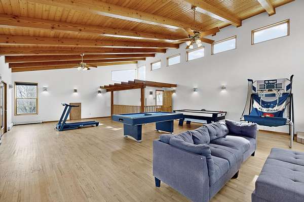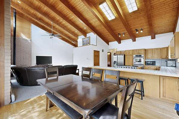 - Beamed Ceilings, Bookcases, Breakfast Bar, Dual Sinks, Garden Tub Roman Tub, Great Room, Kitchen Island, Living Dining Room, Main Level Primary, Multiple Living Areas, Multiple Primary Suites, Pantry, Separate Shower, Skylights, Walk In Closets