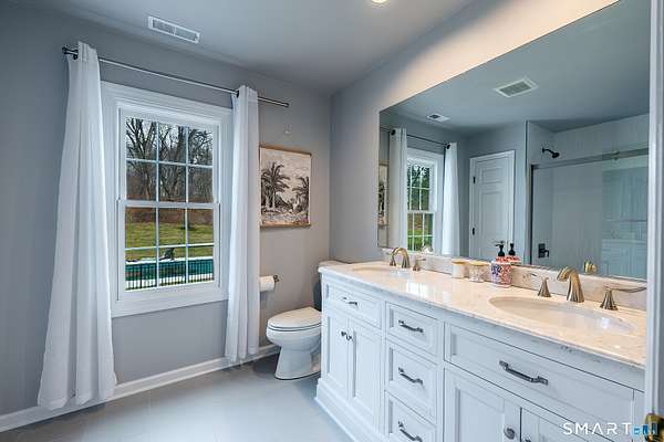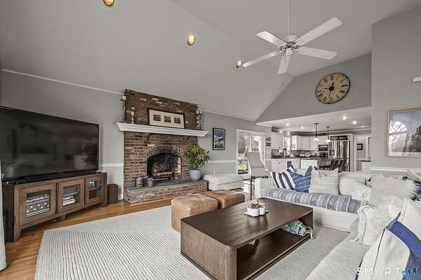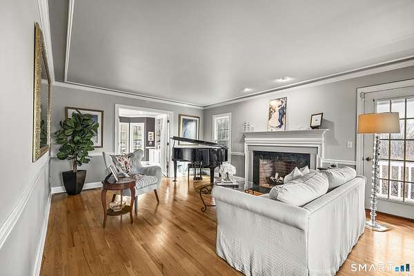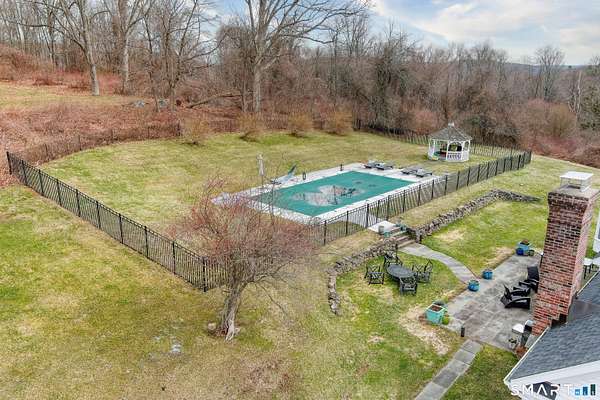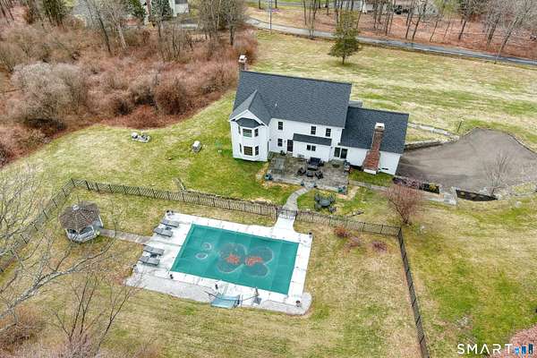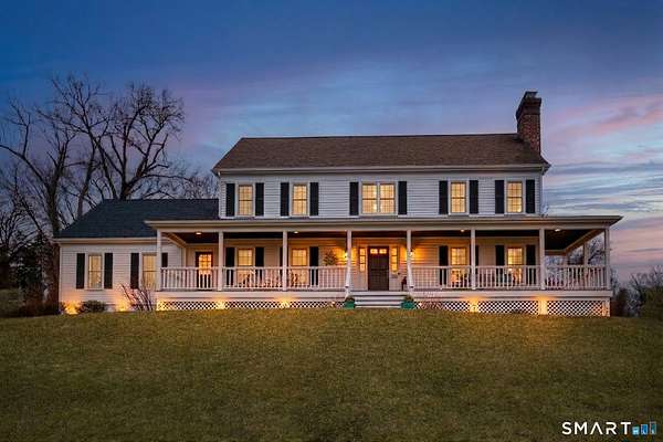 Magnetically sited on a picturesque three-acre lot, this beautifully updated Colonial Farmhouse offers the perfect fusion of timeless charm and modern luxury. This turnkey, four bedroom, 3.5-bathroom residence provides an unmatched lifestyle with exceptional features both inside and out. The home features an expansive, open floor plan designed for sophisticated living and seamless entertainment. The main level includes a Formal Living Room with a fireplace, a Formal Dining Room, & a Office with custom built-ins. The large Eat-In Kitchen is open to a huge Family Room with a second fireplace, creating a warm and inviting hub. A main-level Laundry Room and Powder Room add convenience. The Primary suite is a true retreat with double walk-in closets and stylish new suite bathroom. Additional three generous bedrooms are upstairs and a finished lower level with a full bathroom complete the spacious layout. Experience unparalleled outdoor living in your own private sanctuary. Stunning views greet you from all rooms. The backyard is a true resort-style oasis featuring a Gunite pool, Gazebo, back yard. Multiple outdoor spaces-including a wrapped front porch, bluestone patio facing the pool, are ideal for al fresco dining & year-round enjoyment. Whole house generator. The 3-acre property is lush, private landscaping and amazing sunsets to ensure a magical and secluded escape. This home blends style with functionality, and a prime location just ten minutes to Main Street and highway.