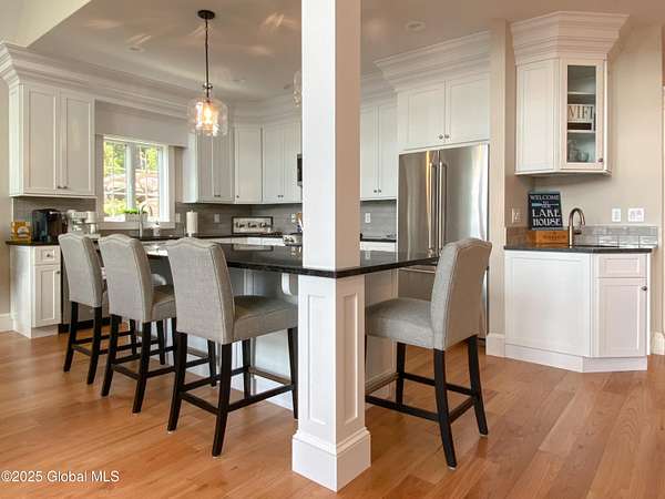 Discover Lakeview Retreat, a stunning 6 Bedroom, 3.5 Bathroom lakeview haven on 1.5 acres in Lake George. With 3,724sq.ft. of beautifully appointed living space, this home offers an ideal escape. Fireplace in the living room, main floor bedroom & laundry room. Two kitchens, so part of the home can be sectioned off for guest or extra family living. There is plenty of parking with the Attached Garages (2 car & 4 car). Enjoy breathtaking lake views from the large lake facing deck and lake rights just down the road. This exquisite home blends luxury and the serene beauty of lake living.