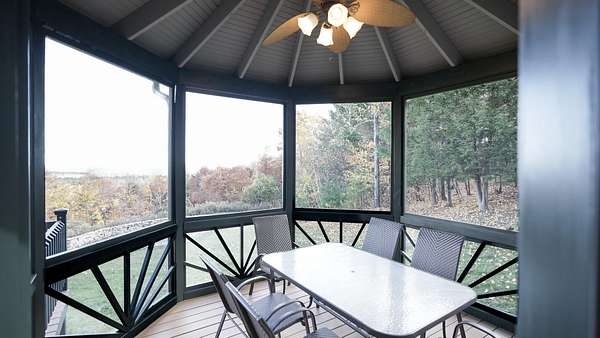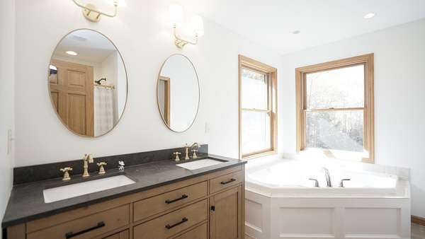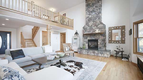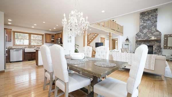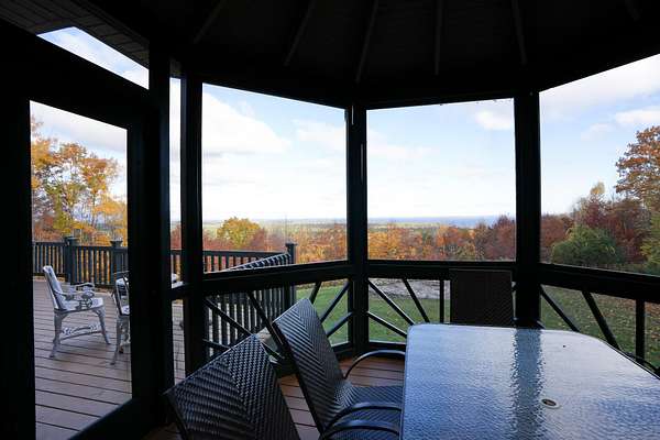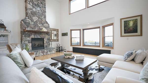 Experience Adirondack elegance and modern comfort with a beautifully updated 4-bedroom, 4-bath home set on over six acres of rolling countryside with breathtaking views of Lake Champlain and Vermont's Green Mountains. Step inside to a grand great room featuring vaulted ceilings, a dramatic stone fireplace, and expansive windows framing the panoramic scenery. The open floor plan flows effortlessly into the kitchen and dining areas, creating a warm and inviting atmosphere for family gatherings or entertaining guests. The kitchen has been thoughtfully updated with checkerboard marble-travertine flooring, butcher block countertops, a Kohler farm sink with German faucet, and premium Bosch stainless-steel appliances, including a double-door refrigerator with water filtration and Bosch dishwasher. A reverse osmosis system and UV water filter provide pristine water quality throughout the home. The primary suite offers a peaceful retreat with new carpet, lighting, and an updated double-vanity bathroom featuring stone countertops, modern fixtures, and mirrors. Additional bathrooms have also been refreshed, including a fully remodeled half bath with marble flooring, granite countertop, Restoration Hardware sink, designer faucet, and Kohler toilet, as well as an updated basement bath for added convenience. The walk-out basement provides abundant space for a game room, gym, or media area, opening directly to the scenic backyard. Outside, enjoy freshly painted exteriors, refinished decks, porches, and gazebo, complemented by enhanced front-yard landscaping that adds to the property's curb appeal. Whether you're relaxing by the fire, hosting guests on the deck, or watching the sunrise over Lake Champlain, this home combines luxury, privacy, and natural beauty in one exceptional package. Discover your Adirondack dream home where craftsmanship, comfort, and breathtaking views come together.