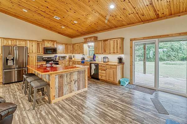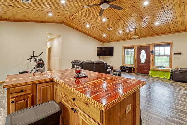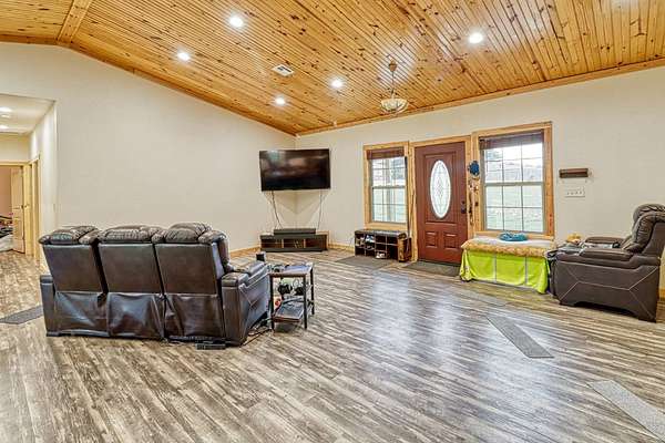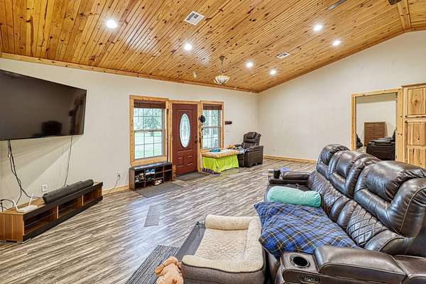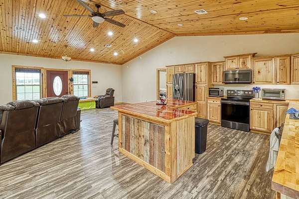 Looking for the perfect mix of space, style, and serenity? This custom-built metal home (2019) sets on 3 peaceful acres and offers a modern country feel with thoughtful details throughout. Inside, you'll find an open floor plan with a split bedroom layout, giving the spacious owners' suite ultimate privacy. The suite features a luxurious walk-in tile shower, jacuzzi tub, private sauna, and plenty of space to unwind. The kitchen is a showstopper - filled with warm knotty alder cabinetry, an oversized island perfect for dining, and wood-lined vaulted ceilings that add rustic charm and timeless character. Enjoy both sunrise and sunset from your covered front porch and shaded back deck, perfect for relaxing or entertaining. Need storage or workshop space? You'll love the oversized detached shop, ready for hobbies, business needs, or extra vehicles. 4 Bedrooms 2 Bathrooms 3 Acres of Land Split Floor Plan Sauna, Jacuzzi Tub Detached 3-Car 30x40 Shop No City Limits This one checks all the boxes - space, comfort, privacy, and modern country living at its finest!