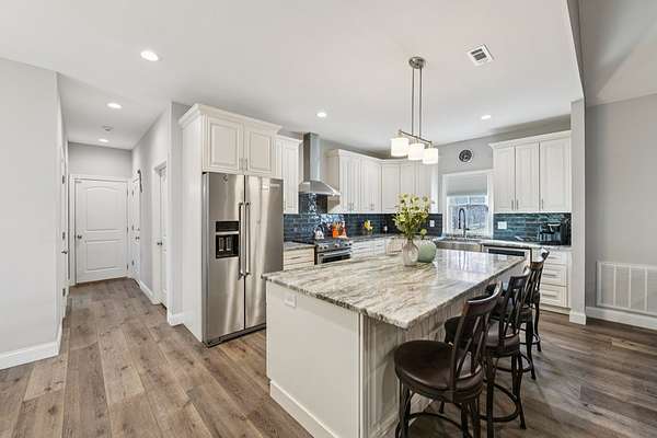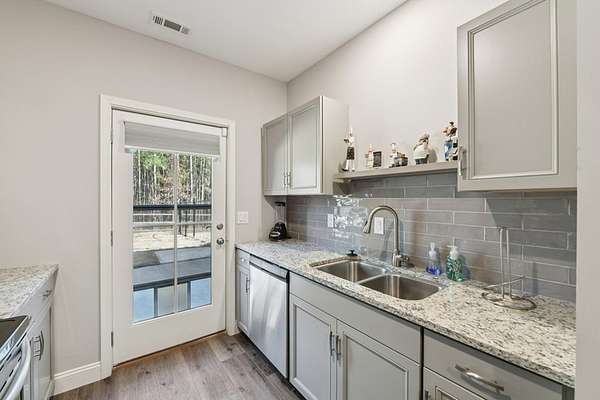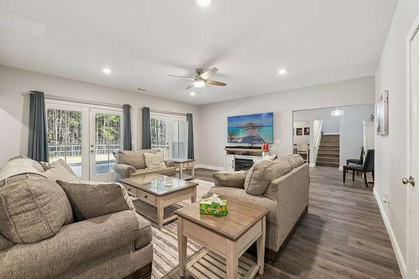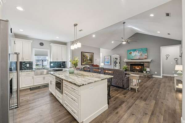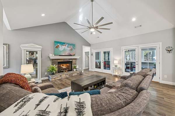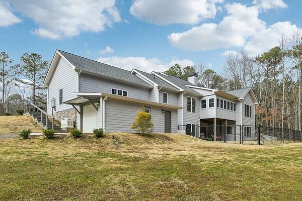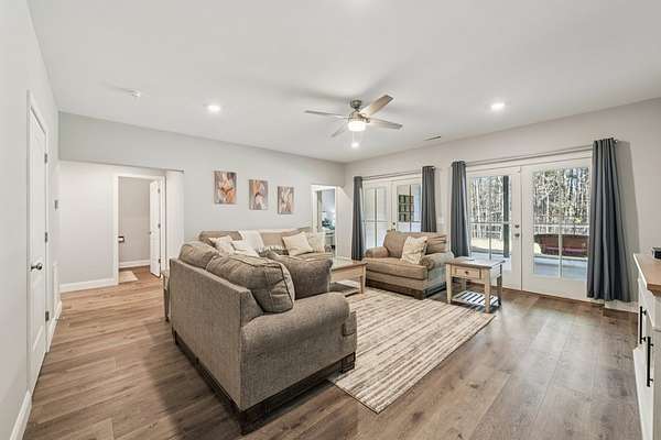 Custom 2021 Ranch on 4 Acres | In-Law Suite | 3-Car Garage | No HOA | Fiber Internet. Welcome to an immaculate, single-owner custom ranch with finished basement estate set on 4 usable, level-to-gently rolling acres with paved access, gated entry, full fencing, private well and septic, and high-speed fiber internet in scenic Ellijay, Georgia. Offering approximately 4,154 sq ft, the home features 4 bedrooms, a dedicated office/flex room easily convertible to a fourth bedroom, 3 full baths, 2 half baths, two full kitchens, walk-in closets, a kitchen island, walk-in pantry, and a large main-level laundry room. The bright, airy main level showcases 9-foot ceilings, high-end finishes, open living with remote gas or wood fireplace, and a four-season sunroom with Trex flooring, while the chef's kitchen includes KitchenAid appliances, custom cabinetry, leathered granite, farmhouse sink, tile backsplash, spacious island, and dining area. The owner's suite offers sunroom access, spa-style bath with tile shower and granite vanities, and a large walk-in closet, with 2.5 bathrooms conveniently located on the main level. The finished, handicap-accessible terrace level completed in 2024 is designed as a true in-law suite with private entrance, full kitchen and walk-in pantry, open living and dining areas, private primary suite with full bath, additional flex room currently used as a gym, half bath, laundry, and covered patio leading to a fenced backyard ideal for pets or play. Additional highlights include a 2-car attached garage plus third rear garage/workshop, separate outbuilding with lean-to added in 2023, Generac whole-home generator (2023), 650+ ft well with purification system, approximately 850 ft of fencing enclosing one acre with gated entry (2024), gently rolling usable land with privacy, and an additional parcel across the private road suitable for a future build, detached garage, or RV storage. Located just 1 minute to Engelheim Vineyards, minutes to Downtown Ellijay