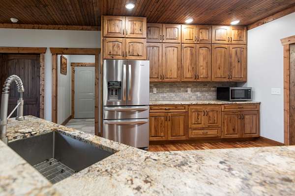 Welcome home! This beautiful 5136 sq foot home features 3 large bedrooms and 3 full baths. Home was built in 2023 and features 5.2 acres, over sized garage with belt driven openers, utility garage, custom hickory kitchen cabinets, Stainless appliances, beautiful granite countertops with leather look, real hardwood floors, his & hers closets in MBR, stamped concrete front porch, granite countertops, leathered granite countertops, tongue & groove ceilings in living room, hall, foyer, front & back porches & kitchen. Propane fireplace, screened in back porch/deck, on demand generator, dual fuel HVAC units, tankless water heater, comfort height commodes, laundry room, office, hard wired security system, gated community, finished garage, full kitchen downstairs, root cellar downstairs, safe room downstairs with metal door, metal exterior doors, gutter guards, fire & co2 detectors, ceiling fans and more! Come and enjoy Sequatchie County taxes while being closer to Chattanooga. Make your appointment to see this one today! You will not be disappointed.
