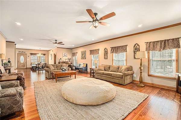 Tucked behind a private drive in Jackson, this one-of-a-kind entertainer's estate offers the space, privacy, and flexibility rarely found in Henry County. Set on 10 usable acres, this property is designed for hosting, multi-generational living, or a home-based business-all while being minutes from everyday conveniences. The main residence is in excellent condition. In addition to the TWO master suites, the true standout, is the resort-style outdoor living experience. An in-ground pool anchors the property, complemented by a large covered pavilion ideal for gatherings, celebrations, or relaxed evenings outdoors. Just steps away, a spacious pool house features a full bathroom and ample room for a game area or lounge, creating a true destination-style setup. Beyond the pool area, the property continues to impress with scenic walking trails, multiple covered parking areas, a pole barn, and a dedicated workshop, making it ideal for hobbyists, collectors, contractors, or anyone needing space to work and store equipment. The land offers privacy and versatility, whether your vision includes recreation, gardening, or simply enjoying wide-open space with no HOA restrictions. This is more than a home-it's a private lifestyle estate offering the freedom to live, host, and create on your own terms, all within Henry County. Properties with this level of land, amenities, and flexibility are rare. Schedule a private showing to experience the possibilities this estate provides.