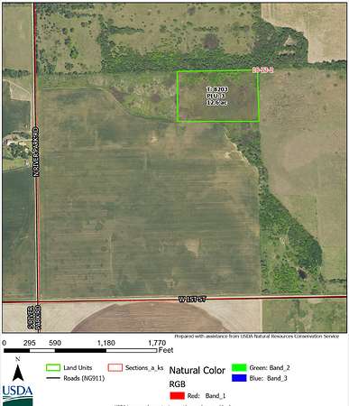This Kansas property offers a rare blend of habitat diversity and hunting opportunity, making it a true sportsman's destination. Known for its exceptional deer hunting, strong waterfowl potential, and abundant upland game, the land is strategically located with wooded Sandhills to the north and rich crop ground to the south. This unique setting provides ideal conditions for whitetails -- secure bedding cover to the north and consistent food sources just across the southern edge.