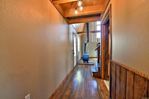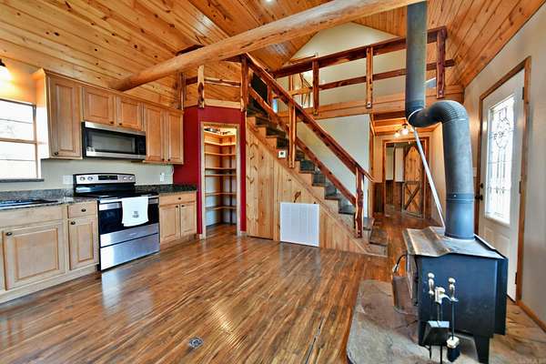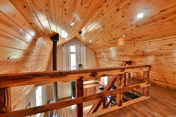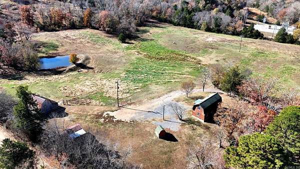 Rustic 2-Bed Cabin on 9.98 Acres - Your Gateway to Adventure! Nestled between Wolf Pen Gap and Fourche Mountain Trail systems, this 2-bedroom, 1-bath cabin offers 928 square feet of cozy, rustic living with wood ceilings and cottage style doors. Built in 2019, it's move-in ready and full of character. Step outside to discover a spacious 9.98-acre property featuring a versatile barn with a loft, tack room, storage, and stalls; perfect for entertaining, horses, or gear. The barn opens at both ends, making it easy to access your toys or host gatherings. Enjoy a peaceful pond, open pasture, and endless outdoor possibilities. Located just minutes from the Ouachita River, Big Fork Creek, and Mill Creek, this property is ideal for fishing, floating, or exploring the great outdoors. With rural water available (currently on well), this spot is perfect for a homestead, weekend getaway, Airbnb, or event venue. Live the country life with adventure at your doorstep. Don't miss this rare opportunity!