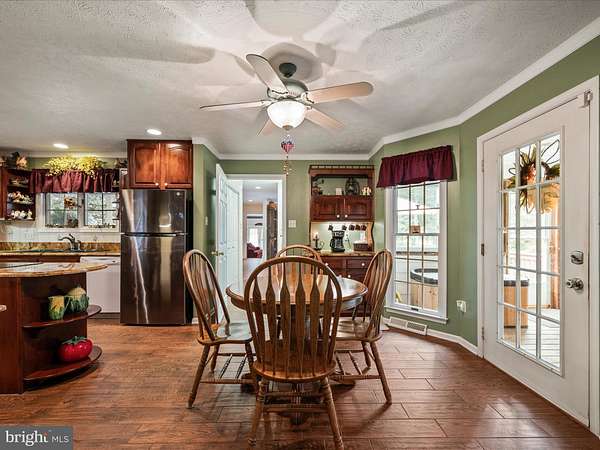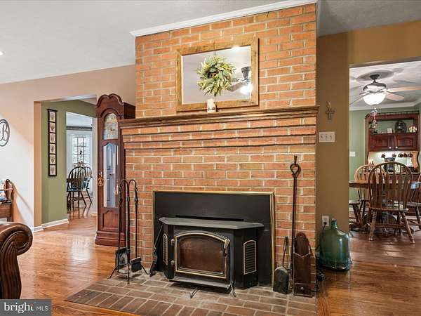 - Attic, Breakfast Area, Ceiling Fan(s), Crown Moldings, Dining Area, Entry Level Bedroom, Family Room Off Kitchen, Formal/Separate Dining Room, Pantry, Pellet Stove, Recessed Lighting, Skylight(s), Soaking Tub Bathroom, Traditional Floor Plan, Upgraded Countertops, Walk-In Closet(s), Window Treatments, Wood Floors, Wood Stove