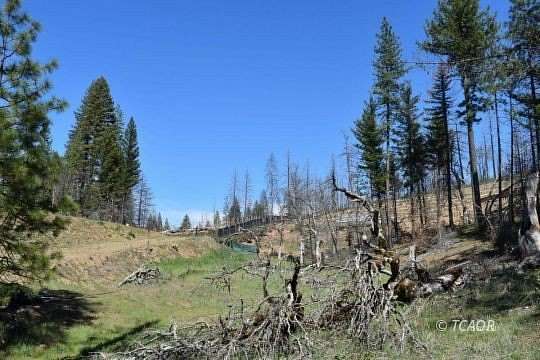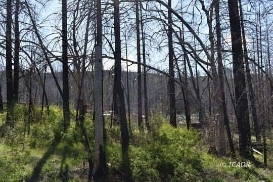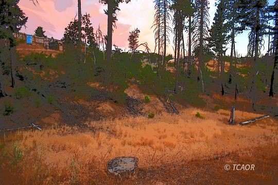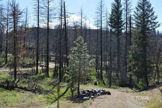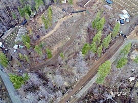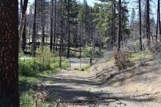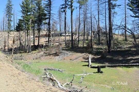 From Hayfork, take a right on Hwy 36. Take Trinity Pines Drive main entrance. The property will be on the right shortly before the pavement turns to dirt and becomes Chrome Mine. (approximately the 7th-8th parcel on the right from the main entrance. Park at the gate where the downed tree is. and w