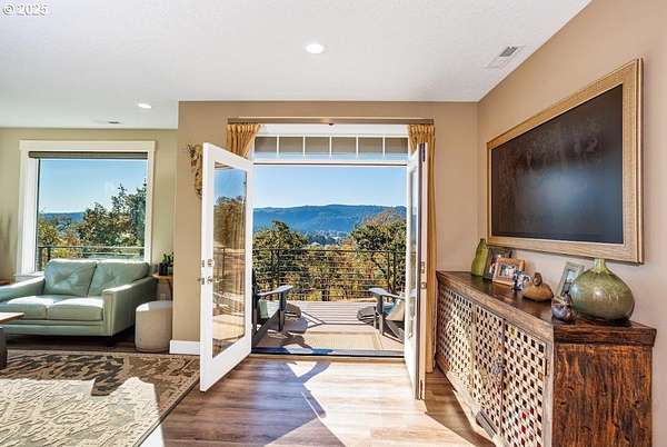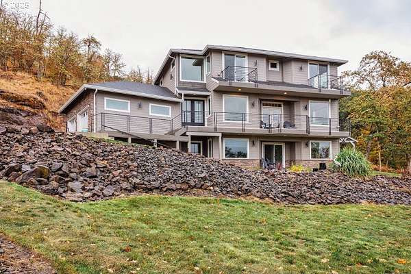Open house Saturday 1:00 until 4:00. Live like you're on vacation every day in this stunning custom home overlooking the Columbia River. Expansive views from all 3 levels, with tall ceilings, abundant windows, granite, laminate, French doors, and designer touches throughout. The lower level features a private ADU with kitchen, living room, full bath, bedroom, office, laundry hookup, and separate entrance-currently a successful Airbnb with 80+ 5-star reviews. Oversized primary suite, three view decks, and a brand-new RV/boat-ready driveway. Govee color-changing lighting, hot tub, and easy 3-minute access to I-5. Enjoy daily wildlife and a perfect balance of panoramic views in front and privacy in back. Must see!