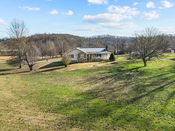 Peaceful country living meets convenience in this well-maintained 3-bedroom, 2-bath home offering approximately 2,207 sq ft on 15 mostly flat, usable acres with mountain views-just 10 miles from Williamsburg and under 20 minutes to Whitley East Elementary. This one-story home features an open kitchen and dining area, hardwood floors, tile in the kitchen and baths, carpeted bedrooms, a real rock fireplace, Buck wood-burning stove, and a versatile bonus room ideal for a home office, nursery, or pantry/additional storage. The primary suite includes a relaxing soaker tub and two walk-in closets. The home has a 4-year-old HVAC system, and the roof was reshingled approximately 15 years ago. Outdoor features include a covered wrap-around front porch, sunroom with large windows that provide abundant natural light and a refreshing summer breeze, attached covered 2-car carport, and fire pit. The property also includes two buildings, a small shed, partial chain-link fencing, an older home place with renovation potential, well water with county water available at the road, and is located near the Cumberland River for recreation.