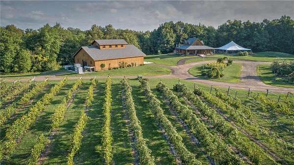 Exceptional Commercial Real Estate Opportunity: Set on 15.48 acres of scenic, gently rolling land, this unique property offers a high-quality commercial facility ideal for entrepreneurs seeking a versatile production space with room to grow. The property features a state-of-the-art production facility, originally designed for wine production, along with a stunning timber frame building that has served as a tasting room and event space. These facilities are well-suited for a variety of future uses, including beverage production, food processing, event hosting, or other commercial ventures. Outdoor amenities include a summer kitchen with a wood-fired pizza oven and a large tent pad area, ideal for open-air events, gatherings, or future expansion. The property also includes eco-conscious features such as solar panel stations and a Level 2 EV charging station--forward-thinking upgrades that offer sustainable infrastructure for future development.