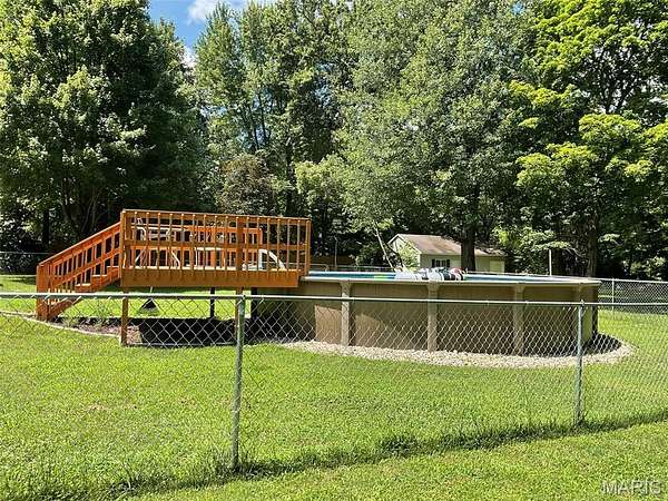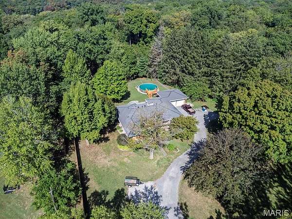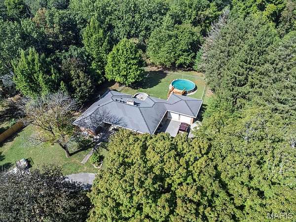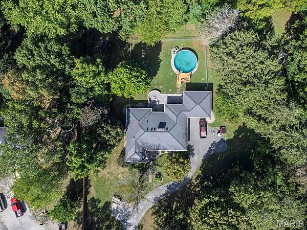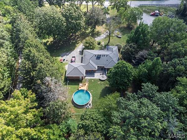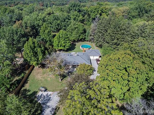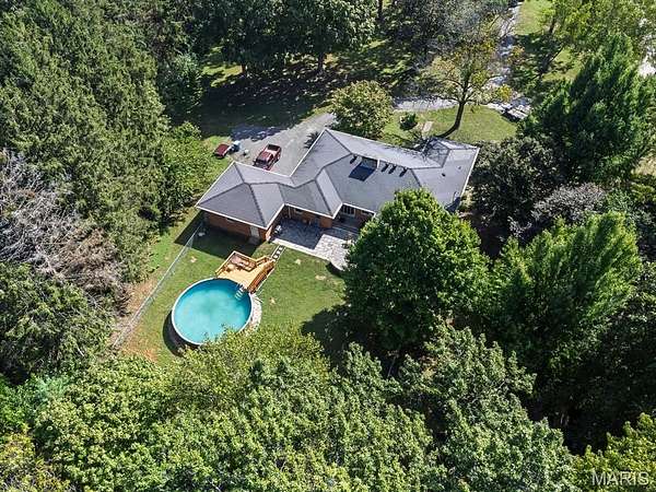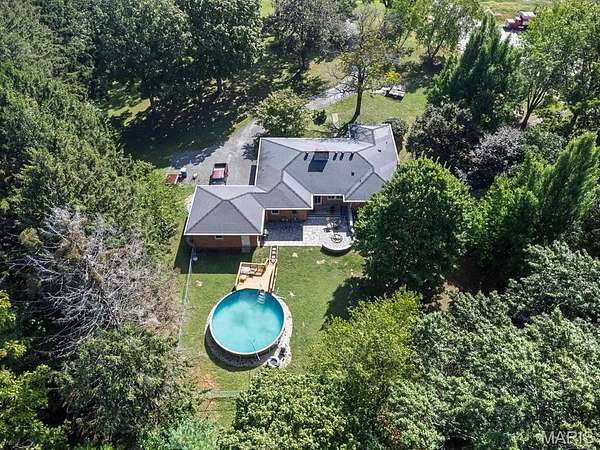 4.44 ACRES OF BEAUTIFUL TREES ADJOINING HIGHLAND SILVER LAKE! All brick home, remodeled kitchen in 2020, hardwood floors. The double sided masonry gas FP adds to the living room and first floor family room, with another masonry woodburning FP in the downstairs rec room. The laundry/mud room is just off the kitchen and inside the back door to the pool. The property includes a 30x40 outbuilding with concrete floor and electric. Updates include the pool in 2022, new deck 2023, windows & gutters & gutter guards in 2019; water heater, 2 sump pumps, ejector pump, sewer pipes & aeration system 2024. The pool area includes a stone patio and fire pit and is fenced. The beautiful shaded yard includes some lovely landscaping. Recently surveyed and corners marked. A hard-to-find home!!