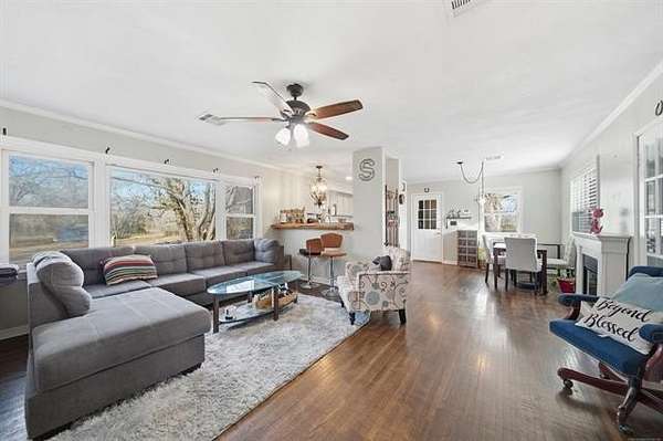 Beautifully situated on 2 acres with a creek, this charming property offers the perfect blend of country living but just minutes to downtown Tulsa - with easy access to highways, restaurants, and schools. This beautiful home features 3 bedrooms, 2 bathrooms, wood floors, granite countertops, stainless steel appliances, vinyl windows, and a flexible bonus room. A walk-out basement (not included in square footage) provides significant additional living space and includes a full kitchen, bedroom, bathroom, living area, and washer/dryer hookups. Recent updates include new electrical (2021), roof (2021), and HVAC approximately 2 years old. Enjoy mature trees, creek access, and outdoor living, zero-turn mower negotiable with acceptable offer. Zoned AG with horses permitted. Property to be sold as-is.