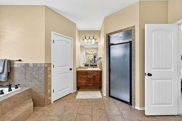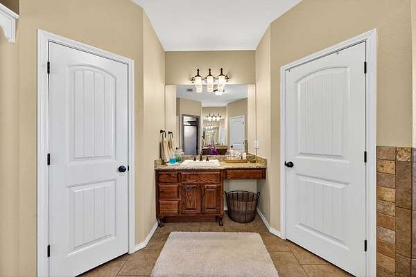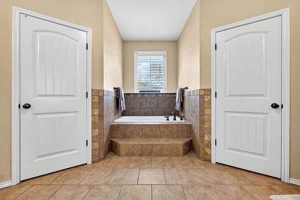 - Auto Garage Opener, Carpeting, Ceiling Fan(s), High Ceilings, Jetted Tub, Pantry, Reverse Osmosis-Owned, Shades/Blinds, Skylight(s), Tile Flooring, Vinyl Flooring, Water Softener-Owned, Wood Shutters