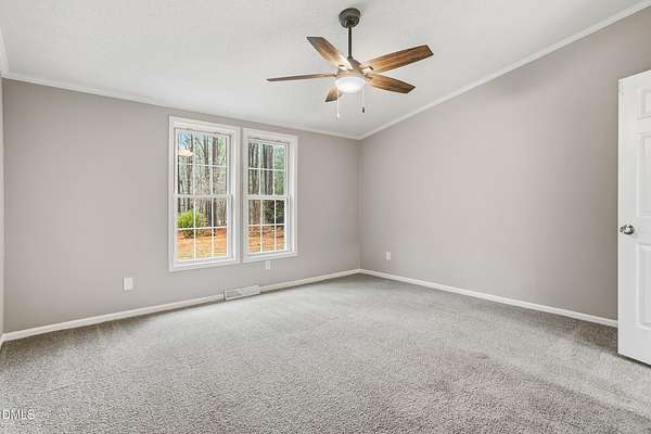 Est $1,588/moCute as a button Ranch on over an acre with a bright open floor plan and upgrades galore. Features a stunning kitchen with granite countertops and stainless appliances. Awesome primary suite with double vanity and seperate tub and shower. Designer inspired interior paint. Private flat yard. Convenient to US1, HWY 64 and minutes to Apex, Holly Springs and Jordan Lake.