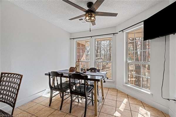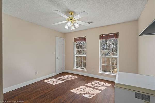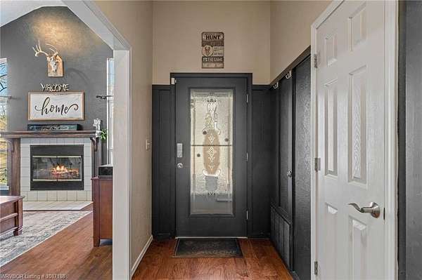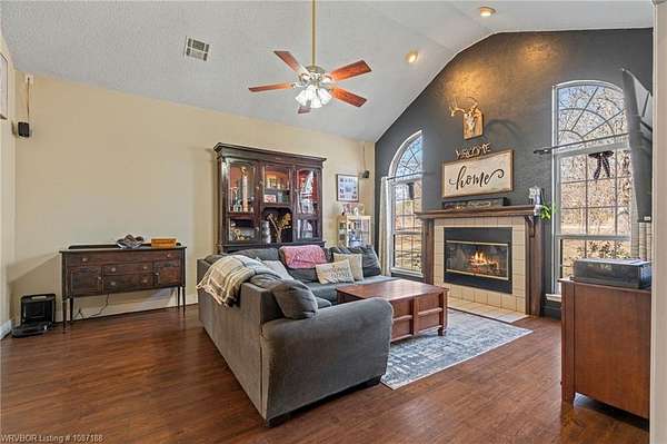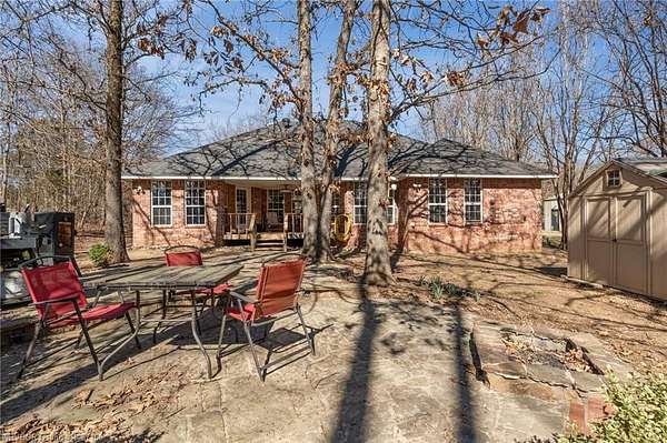 Beautiful 4 bedroom, 2 bath brick home situated on approximately 1.98+/- wooded acres in the Greenwood School District, offering a quiet setting with convenient access to Hwy 71 and an easy drive to Fort Smith, Hackett, and Oklahoma. This move-in-ready home features a vaulted living area with a wood-burning fireplace and a split bedroom layout for added privacy. Updated laminate flooring runs throughout the main living areas, with tile floors installed in the kitchen and both bathrooms in 2024. The kitchen offers stainless steel appliances, an eat-in area, Formica countertops with an epoxy finish, and a separate dining space for gatherings. The primary suite includes a whirlpool tub, walk-in shower, and walk-in closet, with direct access-along with the kitchen-to a spacious deck and adjoining patio area overlooking the private acreage. Recent improvements include a new HVAC heat pump system (2025), newer appliances (2023), updated plumbing in the kitchen and bathrooms (2024-2025), new bathroom vanities (2025), septic pump replaced in 2023 (last serviced June 2023), and a French drain added in the front yard (2023). Property is wired for surround sound and also offers a detached outbuilding/workshop for additional covered parking or storage. A great opportunity for space, updates, and a peaceful setting with everyday convenience.