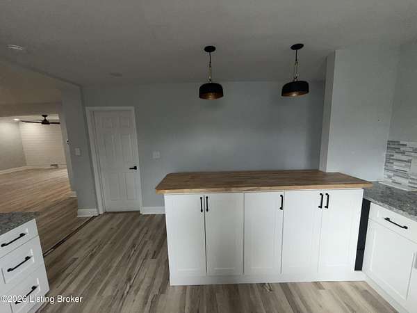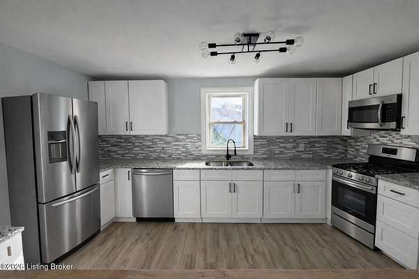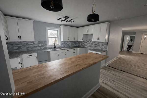 Extremely rare property that would make a both a great home & investment. 2 homes on one gated estate situated on 1.55 private acres. Conveniently located close to the Watterson Expressway. Both homes have been fully renovated inside and out, offering modern upgrades while maintaining timeless charm. The main home is a spacious 2,200 sq. ft. ranch featuring four bedrooms and two and a half baths. The open floor plan flows from a large living room into the dining area and kitchen. The master suite includes his and her closets, marble fireplace, along with a private entrance, & wood slate panel walls. The living room offers recessed lighting, a large storage closet & a decorative shiplap wall. The huge kitchen has been completely updated with new cabinets, granite countertops, bar area with butcher block countertops, tiled backsplash, stainless steel appliances including a dishwasher and microwave. Bathrooms have been remodeled with new tile, vanities, and faucets. The entire home features new vinyl plank flooring, fresh paint, new interior & exterior doors and all new mechanicals including HVAC, electrical panel & wiring, plumbing, water heater, & new light fixtures. The second home/apartment has 800 sqft with studio style living space. It offers its own separate electrical meter, private entrance, new kitchen with tiled backsplash, butcher block countertops, dishwasher, & dedicated laundry room. Updates include new paint, vinyl plank flooring, windows, & bathroom has new tiled shower. It also includes an attached garage with second story perfect for storage. There is a separate stand alone one-car garage & garden area. Both garages have new garage doors. Large carport with enough space for 2 cars. Outside, the property is professionally landscaped and features a new roof, siding, exterior doors, windows and a stone paver front porch with modern lighting. With plenty of space to build a third home if desired, this property is an excellent option for multi-generational living, a rental income opportunity, or a private retreat. Immediate possession. Don't miss this opportunity!!