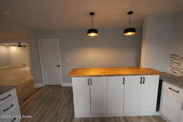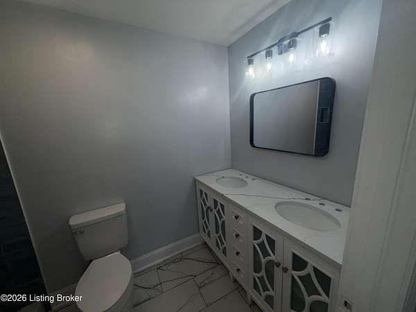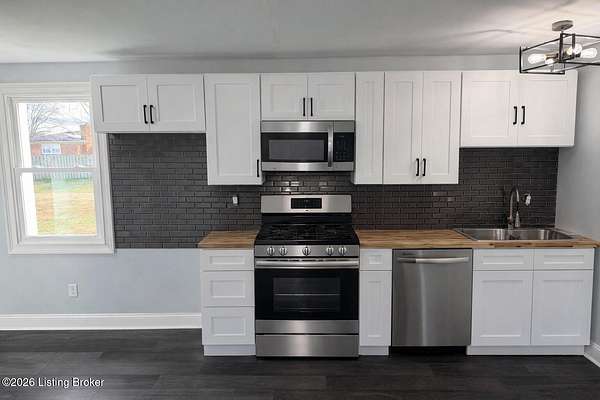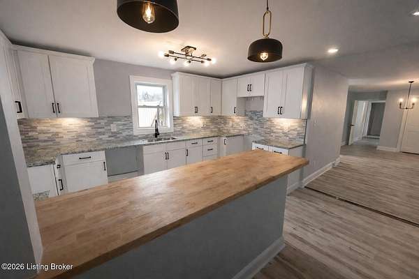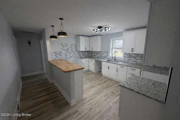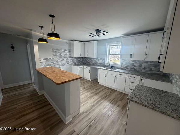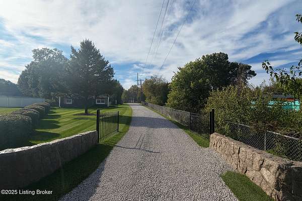 Extremely rare property that would make a both a great home & investment. 2 homes on one gated estate situated on 1.55 private acres. Conveniently located close to the Watterson Expressway. Both homes have been fully renovated inside and out, offering modern upgrades while maintaining timeless charm. The main home is a spacious 2,200 sq. ft. ranch featuring four bedrooms and two and a half baths. The open floor plan flows from a large living room into the dining area and kitchen. The master suite includes his and her closets, marble fireplace, along with a private entrance, & wood slate panel walls. The living room offers recessed lighting, a large storage closet & a decorative shiplap wall. The huge kitchen has been completely updated with new cabinets, granite countertops, bar area with butcher block countertops, tiled backsplash, stainless steel appliances including a dishwasher and microwave. Bathrooms have been remodeled with new tile, vanities, and faucets. The entire home features new vinyl plank flooring, fresh paint, new interior & exterior doors and all new mechanicals including HVAC, electrical panel & wiring, plumbing, water heater, & new light fixtures. The second home/apartment has 800 sqft with studio style living space. It offers its own separate electrical meter, private entrance, new kitchen with tiled backsplash, butcher block countertops, dishwasher, & dedicated laundry room. Updates include new paint, vinyl plank flooring, windows, & bathroom has new tiled shower. It also includes an attached garage with second story perfect for storage. There is a separate stand alone one-car garage & garden area. Both garages have new garage doors. Large carport with enough space for 2 cars. Outside, the property is professionally landscaped and features a new roof, siding, exterior doors, windows and a stone paver front porch with modern lighting. With plenty of space to build a third home if desired, this property is an excellent option for multi-generational living, a rental income opportunity, or a private retreat. Immediate possession. Don't miss this opportunity!!