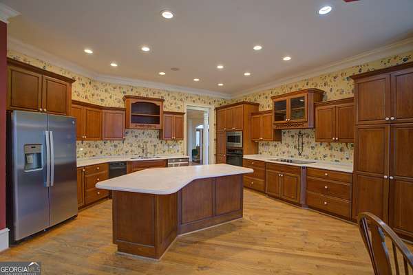 - Cooktop, Dishwasher, Disposal, Gas Water Heater, Ice Maker, Microwave, Oven, Refrigerator, Stainless Steel Appliance(s), Trash Compactor, Water Softener
