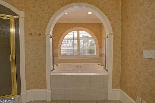 - Central Vacuum, Double Vanity, Entrance Foyer, High Ceilings, Master On Main Level, Rear Stairs, Separate Shower, Soaking Tub, Tile Bath, Tray Ceiling(s), Vaulted Ceiling(s), Walk-In Closet(s)