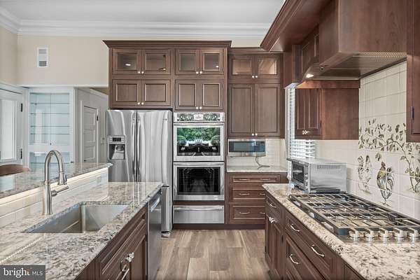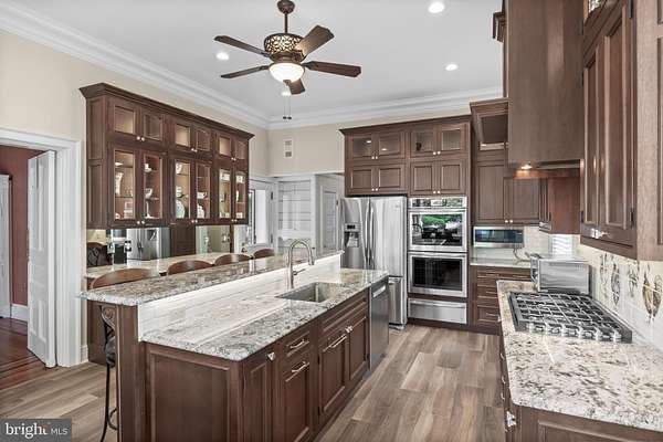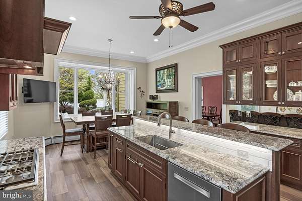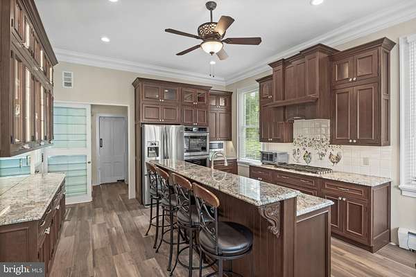 - 2 nd Kitchen, Additional Stairway, Attic, Bar, Breakfast Area, Built-Ins, Carpet, Ceiling Fan(s), Chair Railings, Crown Moldings, Dining Area, Eat-In Kitchen, Elevator, Formal/Separate Dining Room, Gourmet Kitchen, Island Kitchen, Primary Bath(s), Recessed Lighting, Soaking Tub Bathroom, Stain/Lead Glass, Stall Shower Bathroom, Table Space Kitchen, Traditional Floor Plan, Tub Shower Bathroom, Upgraded Countertops, Wainscotting, Walk-In Closet(s), Walk-In Shower Bathroom, Wet/Dry Bar, Window Treatments, Wine Storage, Wood Floors