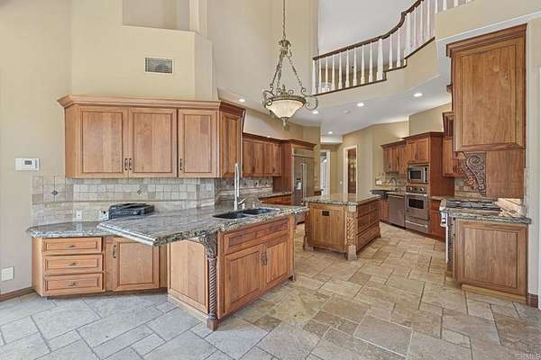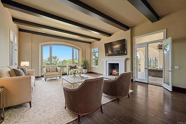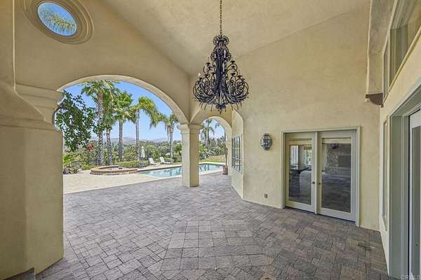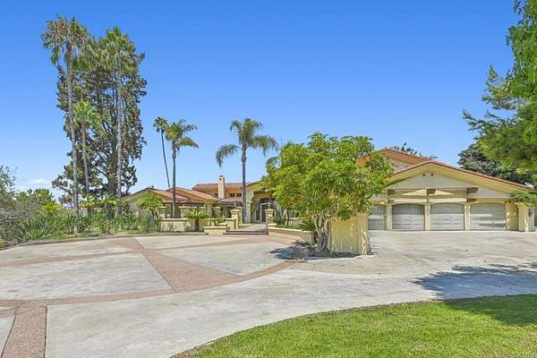 Discover this spacious 6,800 sq. ft., 5-bedroom, 6-bath gated masterpiece set on over 3 acres of pristine land. Perched atop a hill in South Pointe Farms, this residence offers breathtaking panoramic views from every vantage point. The tropical landscaping creates a private, park-like oasis, framing a sparkling pool and spa, expansive paver patios, and inviting outdoor spaces perfect for entertaining. While the mostly single-level layout includes two bedroom suites and guest quarters on the main level. Upstairs, find two additional bedrooms and a versatile bonus room (optional bedroom).A rare blend of privacy and sweeping vistas in the heart of Rancho Santa Fe.