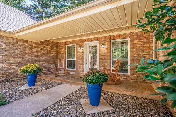 This stunning 3,277 sq ft home is nestled on 8.66 acres of lush landscape, providing a serene retreat that feels miles away from town, yet is conveniently just minutes from local amenities. As you enter through the gated entry and make your way down the long concrete drive, you’ll immediately appreciate the privacy and tranquility this property offers. Step inside to discover a spacious and inviting interior featuring four generously sized bedrooms, three full bathrooms, and a half bath. The heart of the home is the living area, complete with a cozy brick gas log fireplace, perfect for gatherings. The well-appointed kitchen boasts beautiful granite counters, ample cabinet space, and a breakfast bar that comfortably seats four. The adjacent dining room is ideal for family gatherings and entertaining guests. You’ll also find a separate breakfast room, where you can sip your morning coffee while soaking in the breathtaking pond views and abundant natural light. For nature enthusiasts, the real showstopper is the massive deck that spans the length of the home, perfect for outdoor entertaining. Equipped with a built-in grill, this expansive space invites you to host summer barbecues or simply relax while enjoying the picturesque surroundings. Additional highlights include a spacious laundry/pantry/utility room, providing plenty of storage and functionality for everyday living, as well as a two-car detached carport with a storage room. This property is a true gem, offering the perfect blend of comfort, luxury, and natural beauty. Don’t miss your chance to own this exceptional home—schedule a showing today!