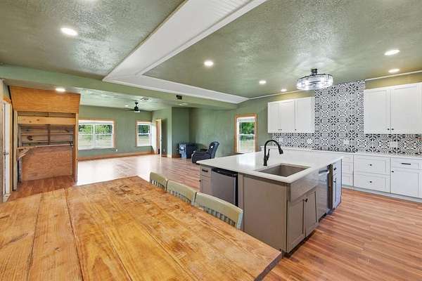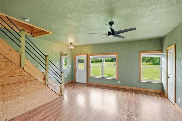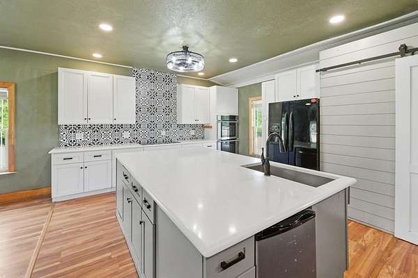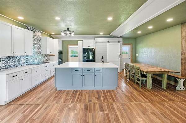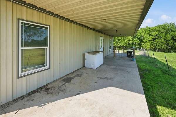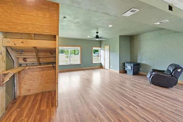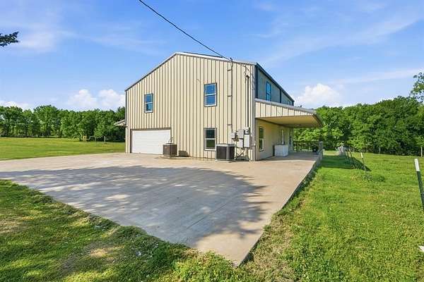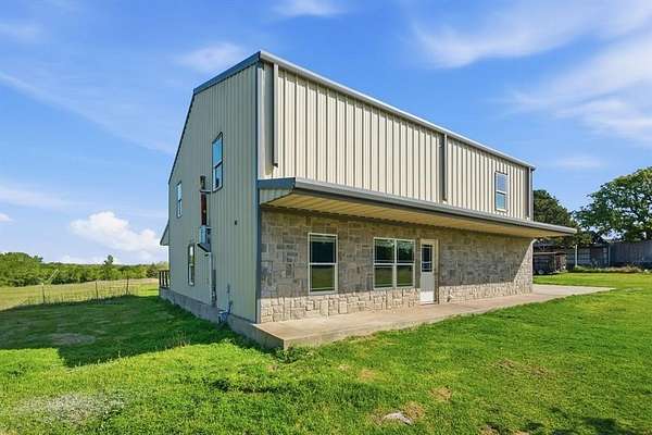 A must-see barndominium offering nearly seven acres of privacy, space, and true country living just minutes from town. This 2,800-square-foot home features four bedrooms and four and a half baths, with generously sized rooms and walk-in closets that make the layout feel open and comfortable. The freshly renovated kitchen stands out with a massive quartz island that anchors the space and brings a modern touch to the home. A dedicated media room or office adds flexibility for work or entertainment, and the wood-burning fireplace creates a warm, inviting atmosphere.