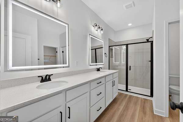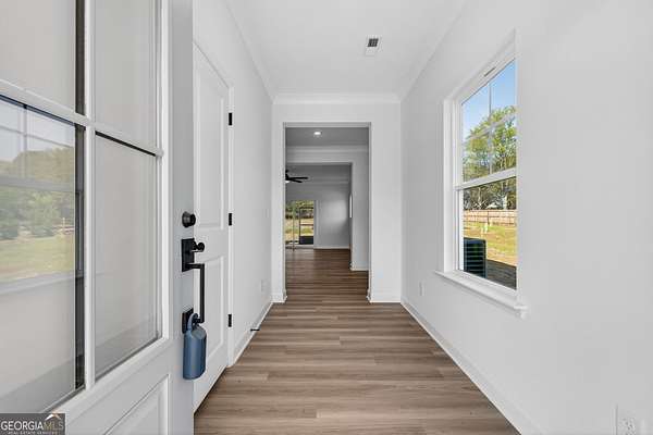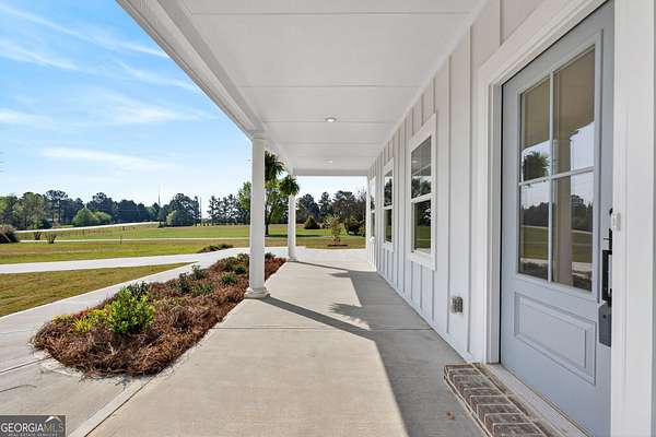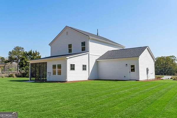 Welcome home to this beautifully designed 4-bedrooom, 3 full bath craftsman style residence with classic Cape Cod nods, including a distinctive gambrel roof and inviting front porch. Situated on a serene 1.92 acre lot, this home offers space, privacy, and timeless character. An oversized front porch with columns sets the tone, while the large screened rear porch with grilling pad provides a private place to relax and enjoy your expansive backyard. Inside, the open layout is enhanced by 9-foot ceilings on both levels and durable LVP flooring throughout. Natural light fills the entirety of the home through the abundance of windows throughout. The heart of the home features a generously sized kitchen with quartz countertops and a tile backsplash, flowing into an oversized dining room- Ideal for gatherings and family meals. A main-level 4th bedroom with a full bath offers flexibility guest suite, in-law suite or private home office. Upstairs, bedrooms 2 and 3 share a Jack-and-Jill bath. The spacious primary suite is a true retreat, showcasing a nice view of the backyard, an oversized walk-in closet, a tile shower, backlit LED mirrors and a large double vanity. Peaceful setting with modern comforts.