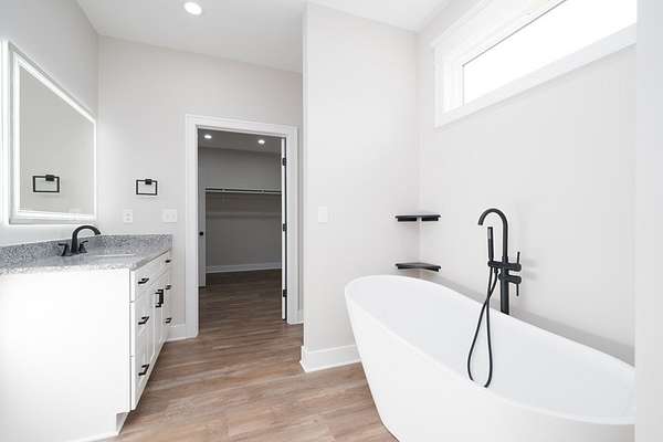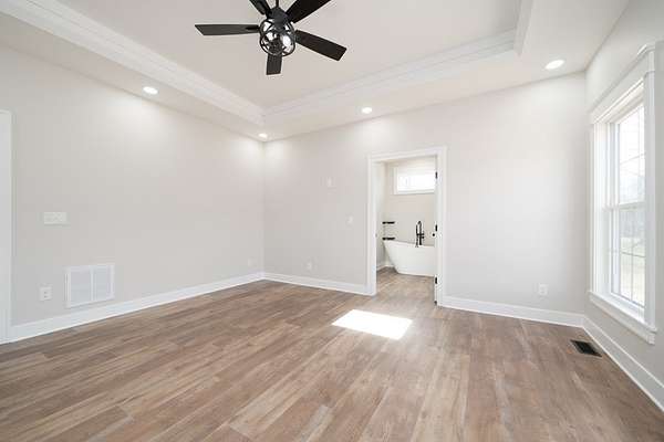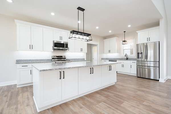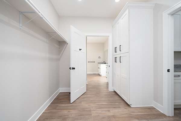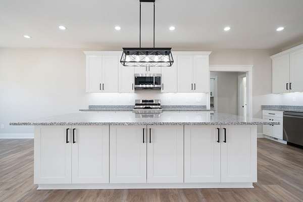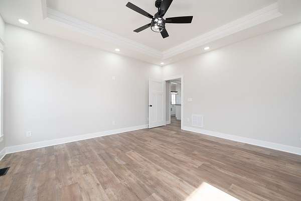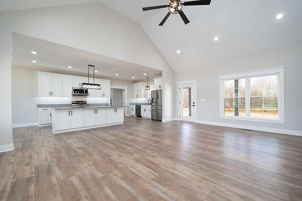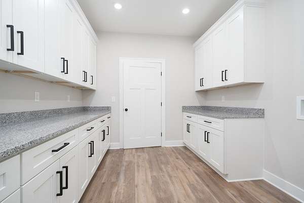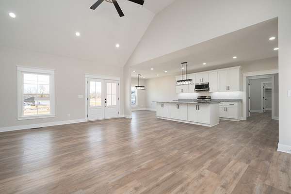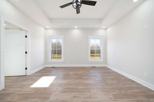 - Ceiling Fan(s), Floors-Laminate, Garage Door Opener, Island, Pantry, Split Bedroom, Trey Ceiling, Walk-In Closet(s)