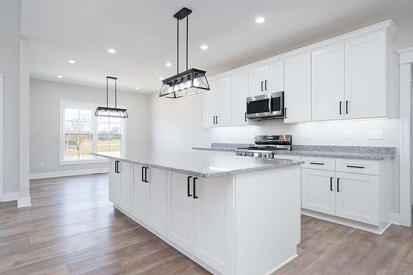 Beautifully maintained 3 bedroom, 2 bath home with office (could easily be used as a 4th bedroom w/out closet) located just outside city limits, offering the convenience of town with the freedom of county living. Situated on nearly 2 acres, this home provides privacy, space, and curb appeal in a peaceful setting. Inside you'll find an open, functional layout featuring granite countertops, quality finishes, and a striking floor-to-ceiling gas fireplace anchoring the living area. The flexible office space is ideal for a home office, guest room, or additional bedroom. The primary suite offers a tray ceiling with LED lighting, his and hers vanities, full shower, soaker tub, and a large walk-in closet with built-in cabinets. Expansive yard provide room to relax or entertain, all with easy access to city amenities. Already has exterior sub-panel (future detached garage ready). Final grading & seeing to be completed at no cost in the spring due to weather delays.