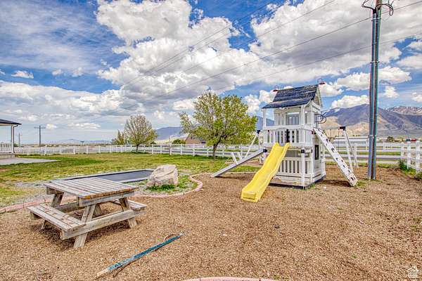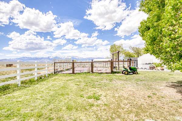 Welcome to your spacious and updated oasis with mountain views from every angle! This 5-bedroom home sits on an expansive 2-acre lot, offering plenty of room to grow and play. Enjoy peace of mind with a new roof (2024), two new air conditioning units (2023, 2024) and new water softener (2024). Delight in your very own orchard, yielding delicious apples, Asian pears, peaches, and cherries. You'll also find a custom 8' x 12' chicken coop with 25' x 12' chicken run and 60' x 30' fenced garden. The 50' x 30' detached garage/workshop includes 110/220 power. The recently updated (2023) interior features an open and inviting kitchen, complemented by impressive living areas and storage solutions designed for modern living. This incredible property is ready for you to make it your own! Located in the district for the new Deseret Peak High School, opening in Fall 2025. Property also includes 2 Shares of Water!