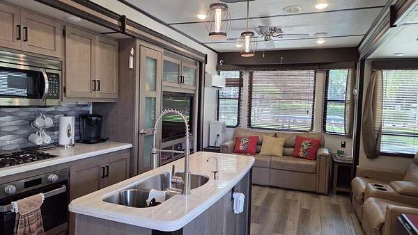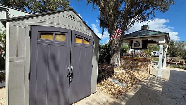Experience the ultimate Florida lifestyle at 431 Waterway Drive, a rare turnkey opportunity featuring a direct waterfront lot and RV package deal! Situated in the highly coveted Phase 5 of River Ranch RV Resort, this spacious 40x92 big-rig friendly lot is move-in ready for personal use or immediate rental income. RV: 2021 Keystone Retreat Cottage - 391MKTS | 40’8” Golf Cart: 2021 Yamaha 6 Seater | GAS. A true boater’s dream, the property includes a private dock with direct access to the world-class Kissimmee Chain of Lakes. The expansive outdoor living space is anchored by a massive custom pavilion for all-weather camping, complemented by multiple seating areas, mature shade trees, and a full-sized storage shed. This premium lot offers enhanced privacy with a common area directly across the street, ensuring no immediate front neighbors.