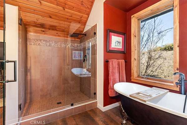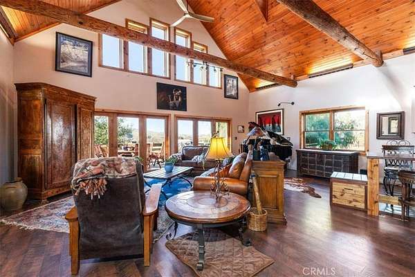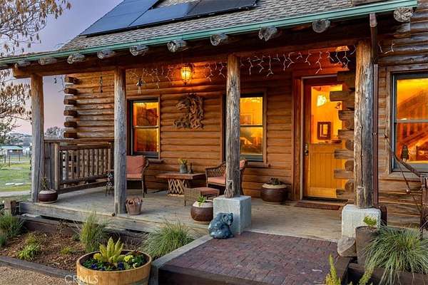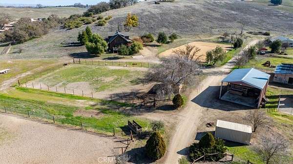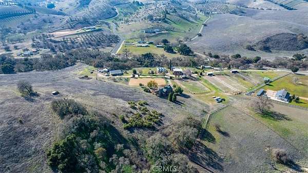 This nearly 16-acre piece of paradise offers endless possibilities for development, thanks to its desirable terrain featuring plenty of flat, usable areas. It's perfect for you and your extended family to create your own family compound. Conveniently located just off the beautiful wine trail on El Pomar, the property is surrounded by stunning vineyards and is only minutes away from both Templeton and Paso Robles. The property includes a stunning 2,360 sq ft log home, completed in 2023, featuring three bedrooms, three bathrooms, and a beautiful office. The exterior was just pressure washed, re-caulked, stained, sealed and painted the exterior siding, porches, balcony, and patio. A second original 1,300 sq ft home built in 1980, currently used as a duplex. Additional amenities include two RVs with full hookups, a dump station, a modified 6-stall Port-a-Stall barn with runs, a 2-stall barn with turnouts, a 1,200 sq ft shop/hay barn with a concrete floor, a 150' x 100' arena, solar systems and 7 pastures--6 of which have shelters. There's also a storage container for added convenience.