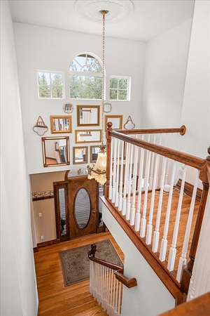 Custom Victorian 2 Story on a hard to find close-in 5.74 acre lot in the heart of Central Valley tucked in a small gated community. This is a one owner home with expansive sunset views, wrap around porches & show stopping landscaping all carefully curated by a master gardener over the last 2 decades. The grounds include a gazebo, cozy garden nooks, large concrete patio w/pergola, walking paths & more waiting to be enjoyed. The home itself is full of thoughtful detail including antique fireplace mantle, vintage chandelier & crown molding. Grand stairway in the foyer w/formal living & dining rooms on each side opens into the great room w/window bench, informal dining & granite kitchen w/large center island. This is a perfect space for entertaining & room for everyone. Powder room, small office & laundry on the main. Daylight walkout basement with slate tile floor. Large bedrooms throughout & great storage. 3 car garage with workshop space PLUS a detached art studio/garage & carport. See flyer for more!