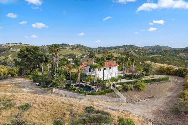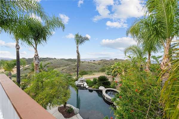 Perched at the top of the hill with breathtaking views, this Mediterranean-style estate is all about privacy and that “wow” factor the second you pull up. With 4 bedrooms and 5 bathrooms, the home takes full advantage of its setting with sweeping panoramic views across Temecula and Murrieta. The backyard is the showstopper as it sits on 5 acres with an Avocado Grove. An infinity-edge pool and spa that feel like they disappear right into the valley, creating a backdrop you just don’t come across often. It’s quiet, private, and built for those sunset evenings Temecula is known for. Inside, the layout is spacious and functional with marble flooring, a large kitchen, formal living and dining areas, and a dedicated office. The 4-car garage gives you plenty of room for cars, toys, or storage. Upstairs, the primary suite has its own private balcony where you can take in the city lights at night and unwind at the end of the day. You wouldn't believe you're only 10 minutes from town, which makes it a breeze to run errands. Whether you’re entertaining, hosting family, or just want space and privacy, this is one of those rare view properties that really delivers.