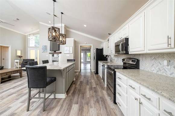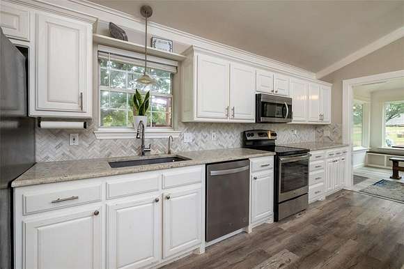 3 acre country retreat just outside the City Limits! Discover this beautifully updated 4-bedroom, 2-bath home situated on a fully fenced 3-acre lot in one of Granbury's most sought-after areas--outside city limits for added flexibility and privacy! A remote-controlled gate welcomes you to a peaceful property just minutes from shopping, dining, and entertainment. Inside, you'll find a spacious, open-concept layout with vaulted ceilings and abundant natural light. The remodeled kitchen features granite countertops, an oversized island, and a clear view into the living room--complete with a stylish fireplace. The added dining area includes custom cabinetry and large windows that frame stunning countryside views. The oversized front room offers versatile use--ideal as a game room, home office, or second living area. The split-bedroom design ensures privacy, with spacious bedrooms and upgraded bathrooms throughout. A new roof provides peace of mind. Outside, enjoy ample parking space, including room for an RV or oversized vehicle. The property includes a workshop, barn, chicken coop, and a separate fenced area for animals--perfect for homesteaders, hobby farmers, or those seeking extra space and freedom.